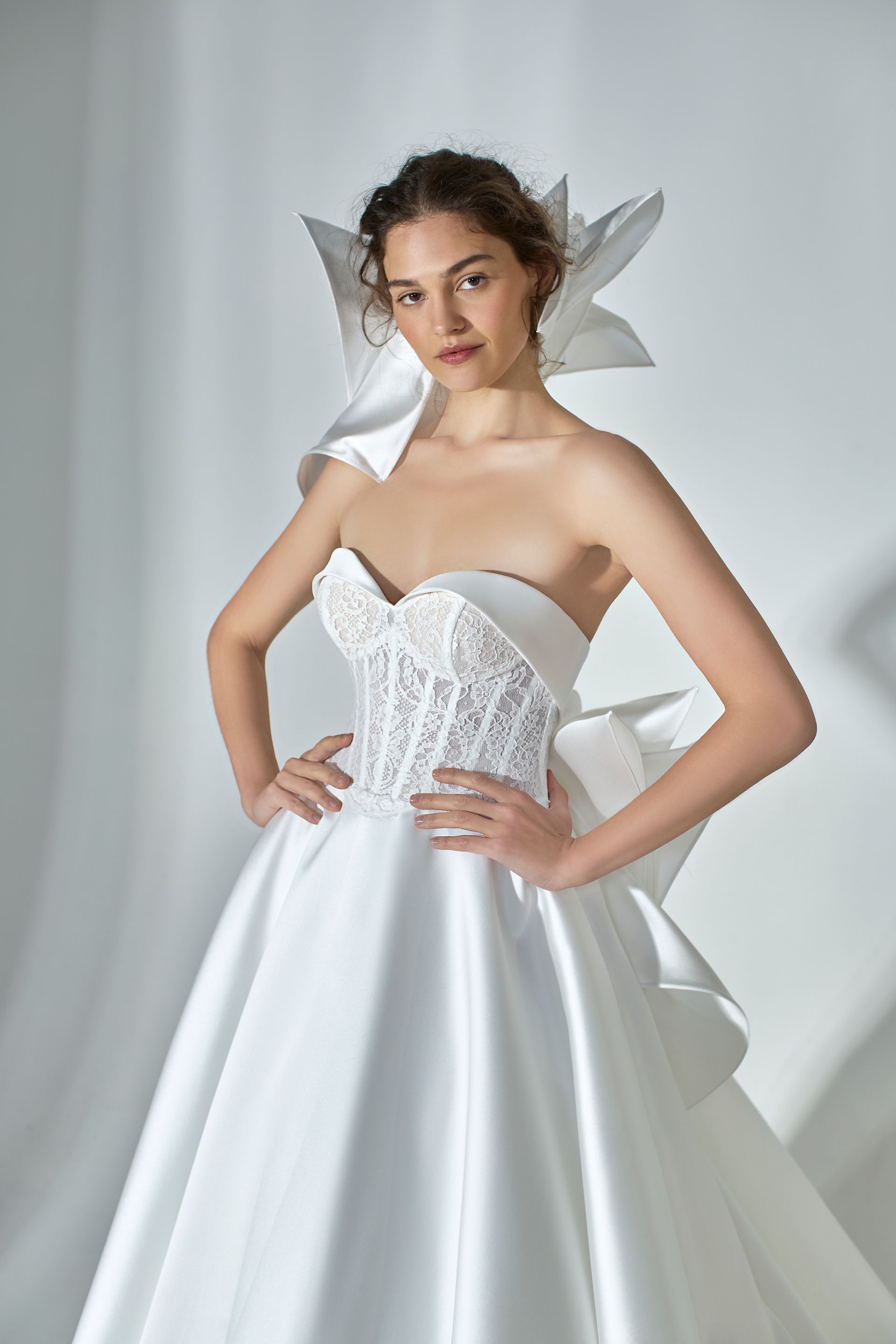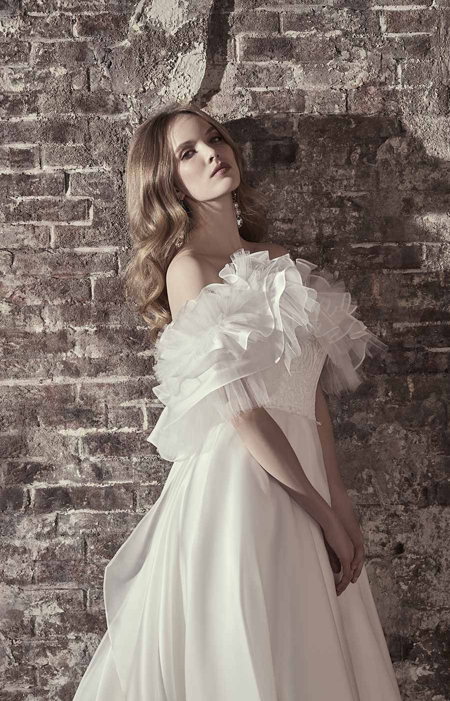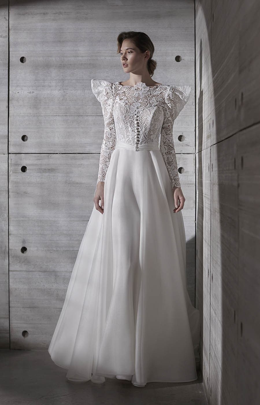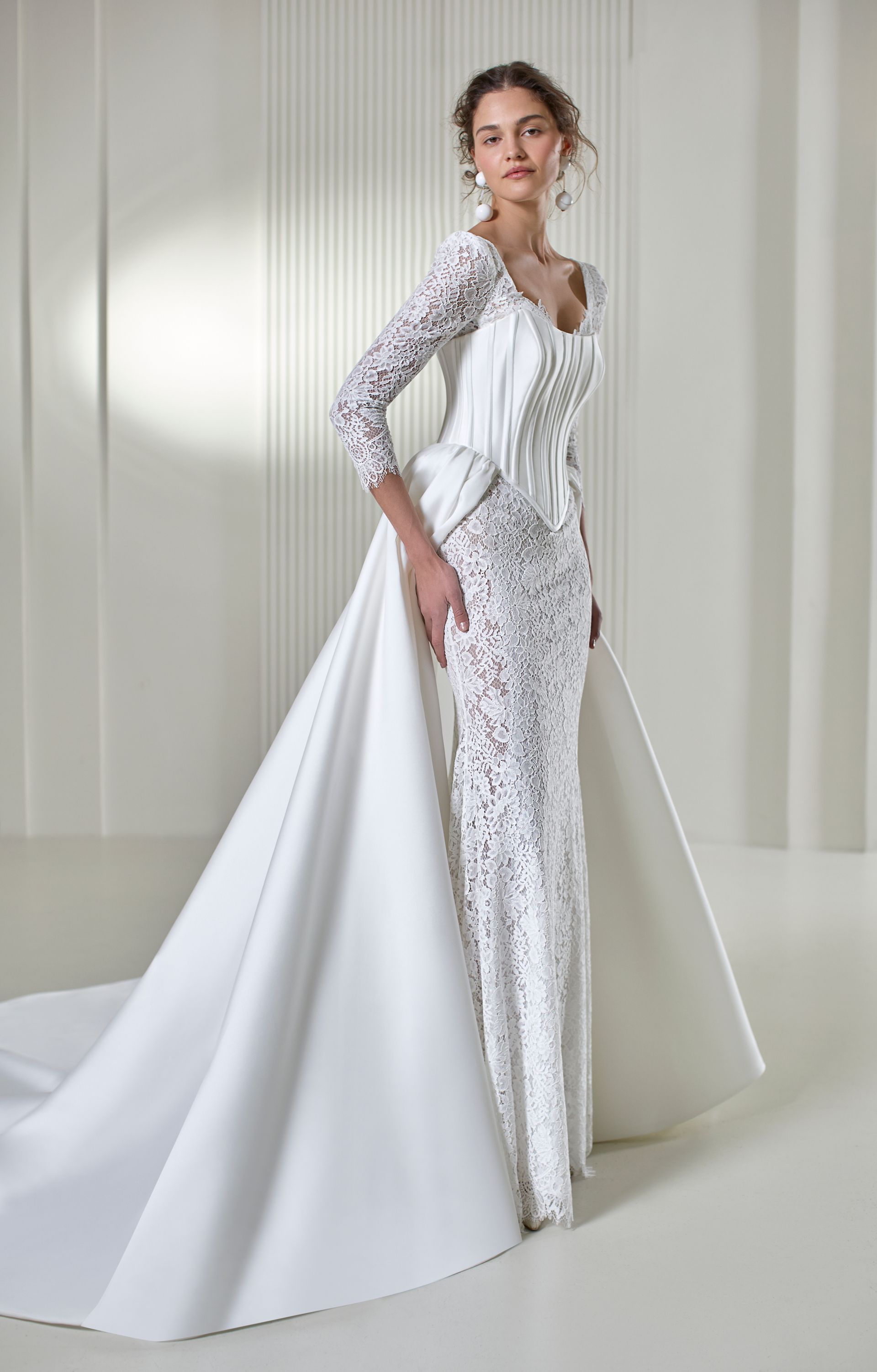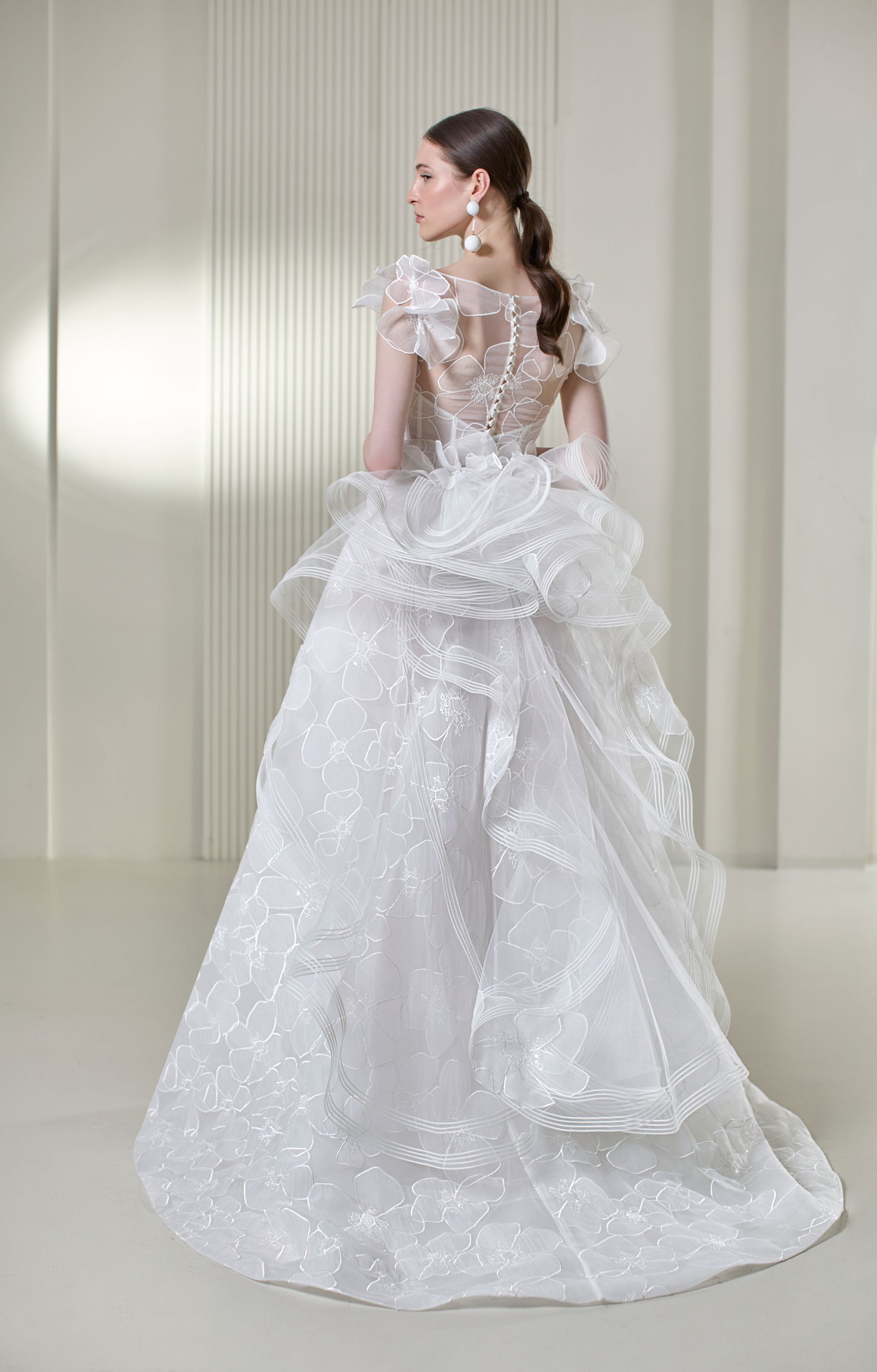 Trasparenze, plumetis, glitter, pizzi tridimensionali e a rete, fiori stilizzati e piccole farfalle rendono le creazioni haute couture della linea EP originalissime ed esclusive. La scelta accurata dei tessuti innovativi e l’impatto scenico di modelli estrosi, li rende indimenticabili e perfetti per una sposa dal carattere audace e grintoso.