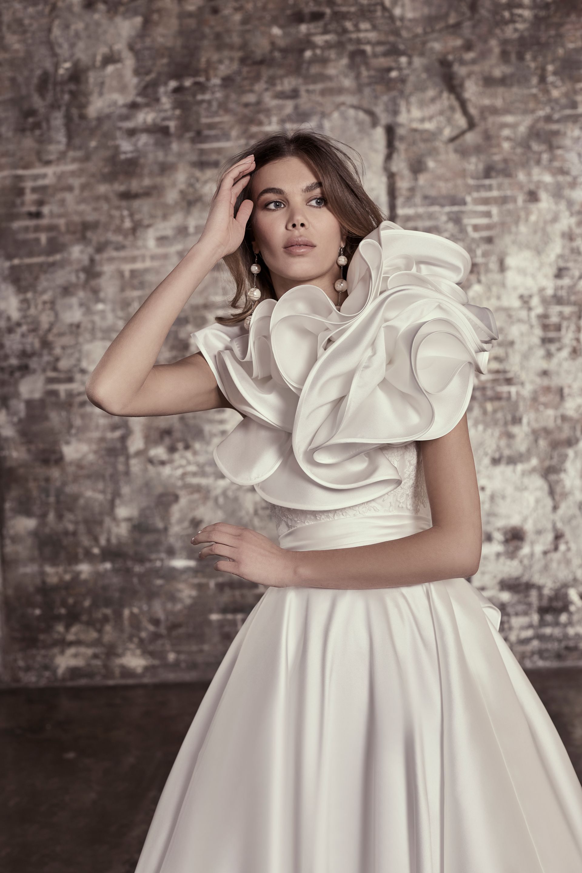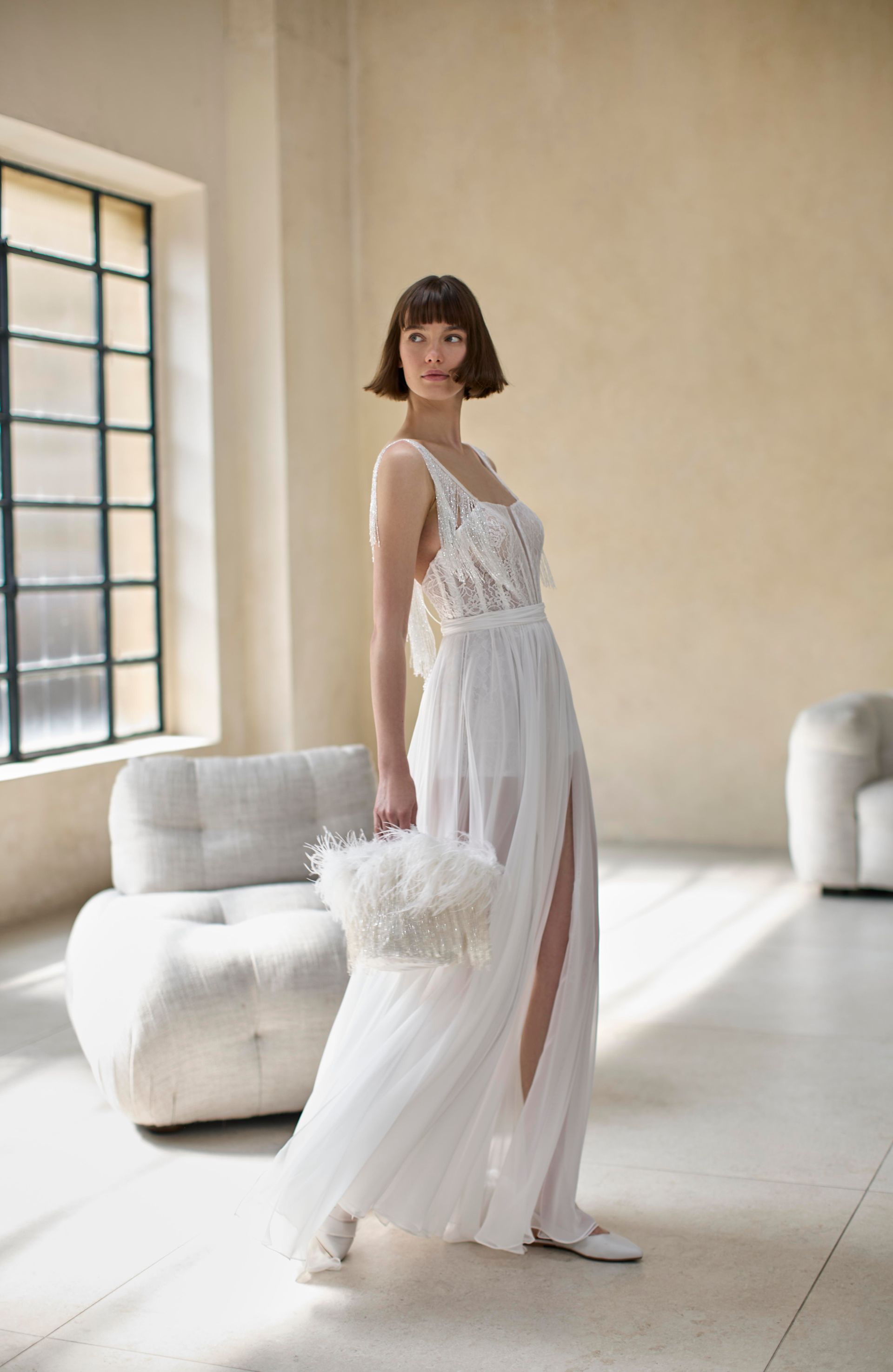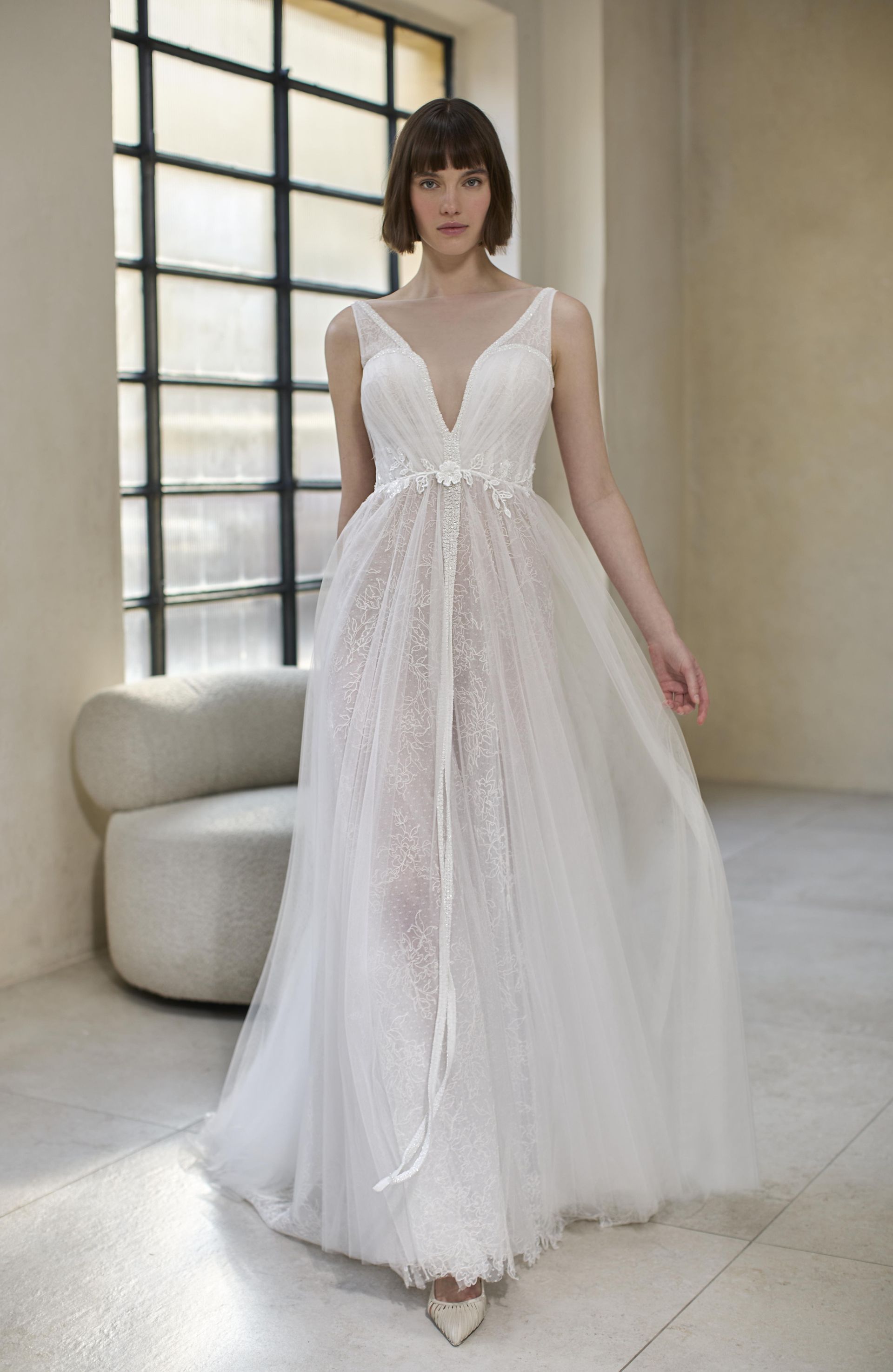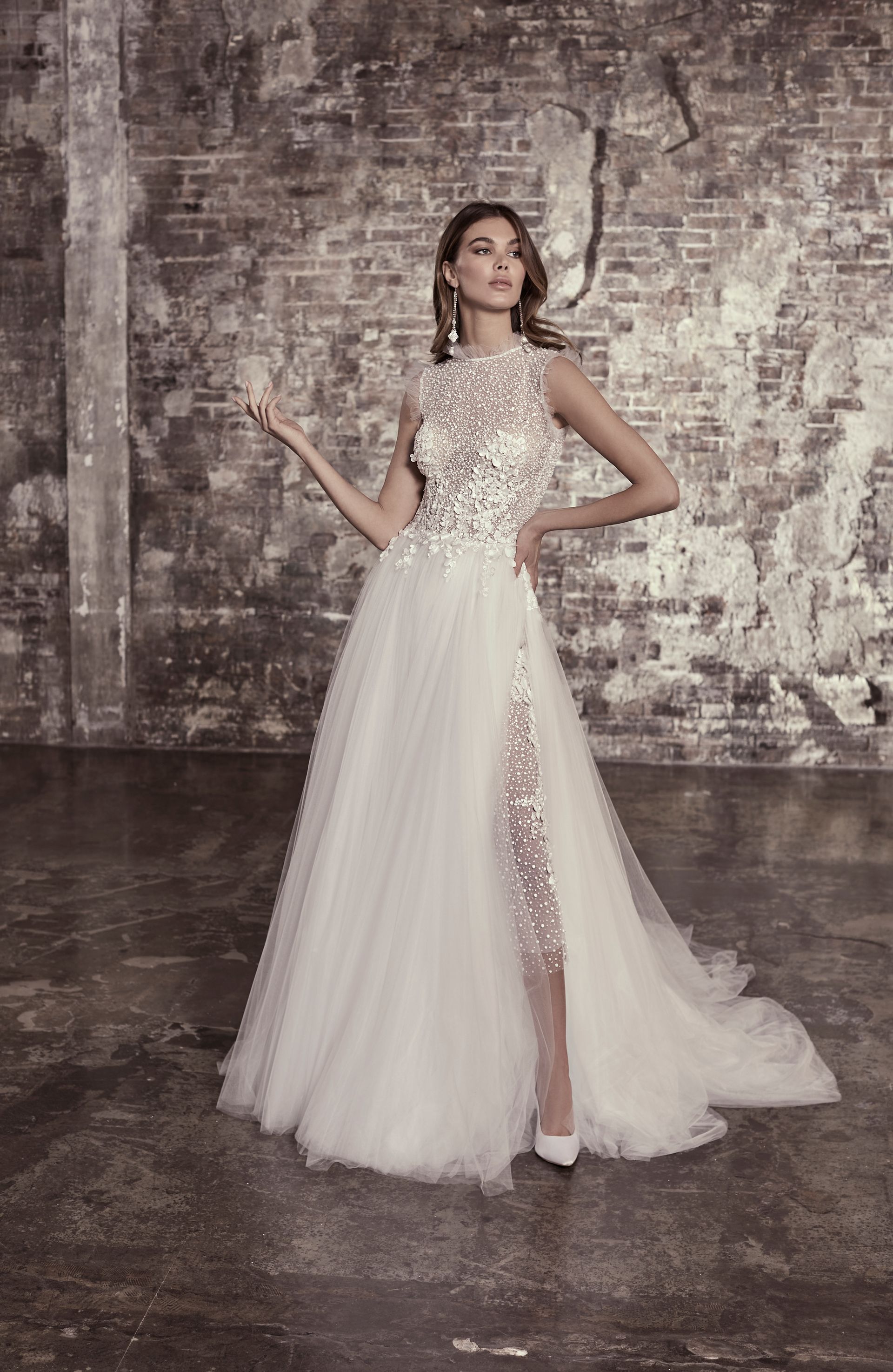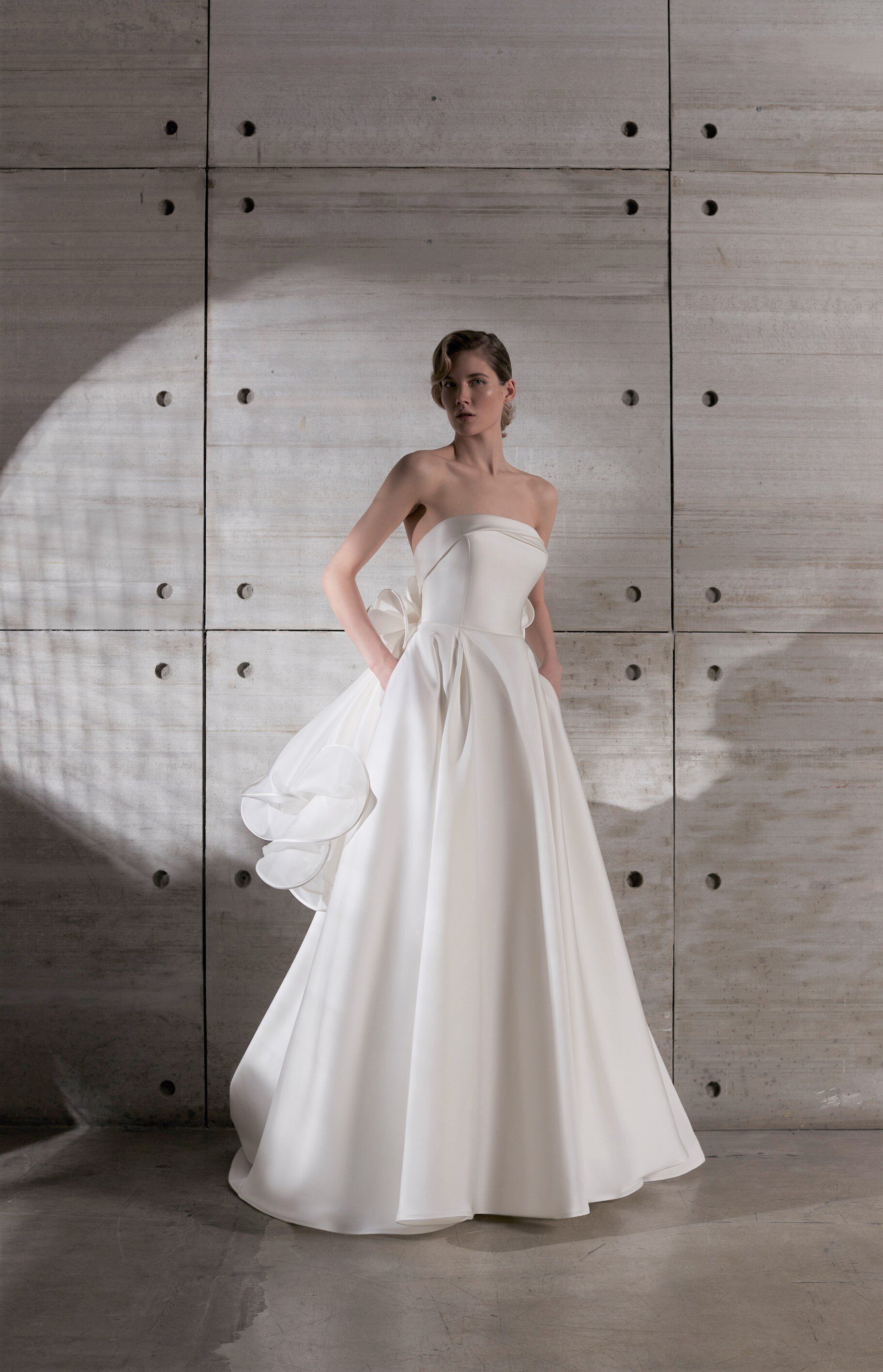 Trasparenze, plumetis, glitter, pizzi tridimensionali e a rete, fiori stilizzati e piccole farfalle rendono le creazioni haute couture della linea EP originalissime ed esclusive. La scelta accurata dei tessuti innovativi e l’impatto scenico di modelli estrosi, li rende indimenticabili e perfetti per una sposa dal carattere audace e grintoso.