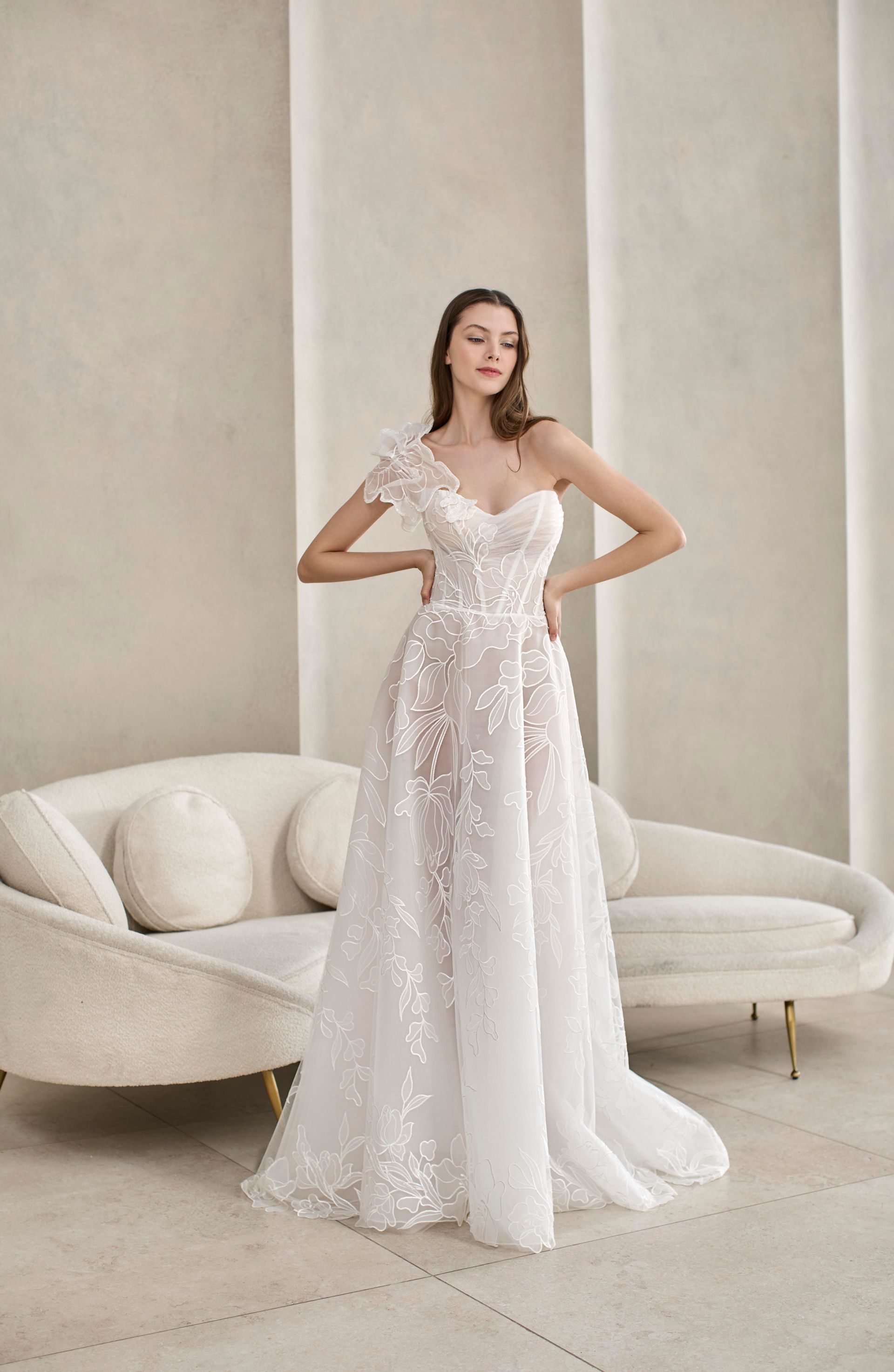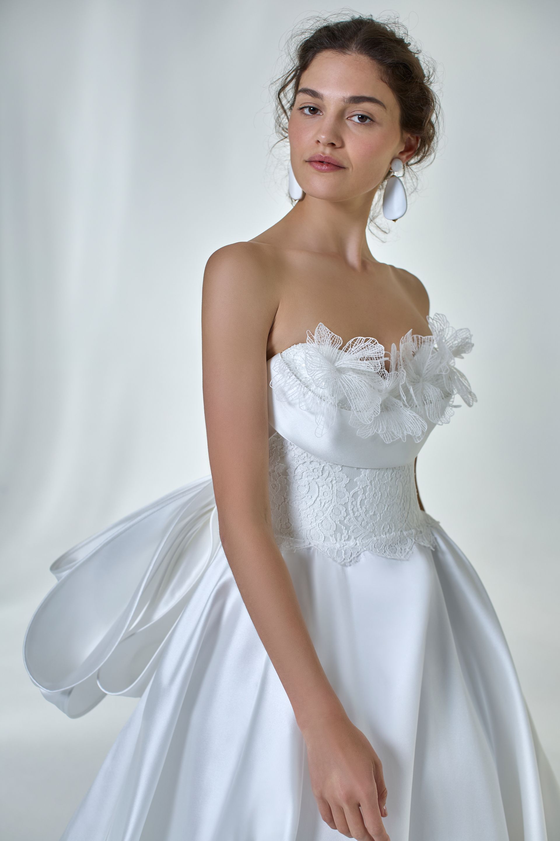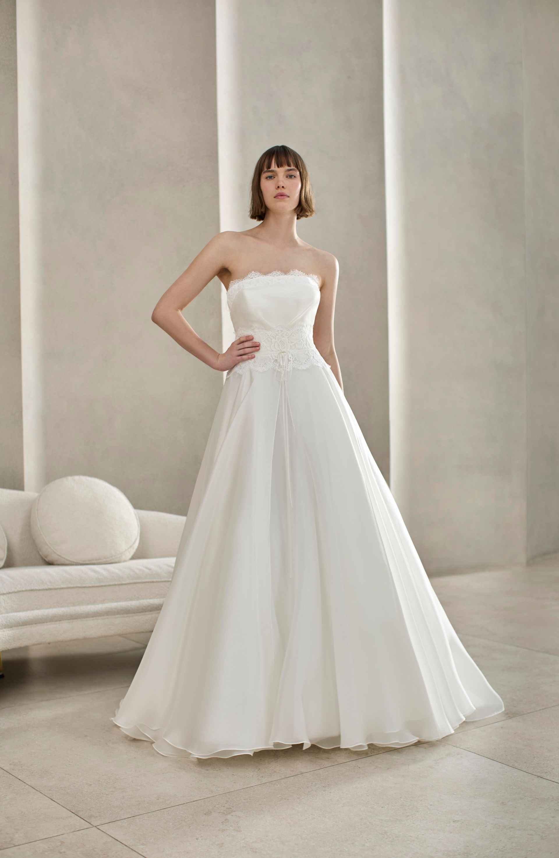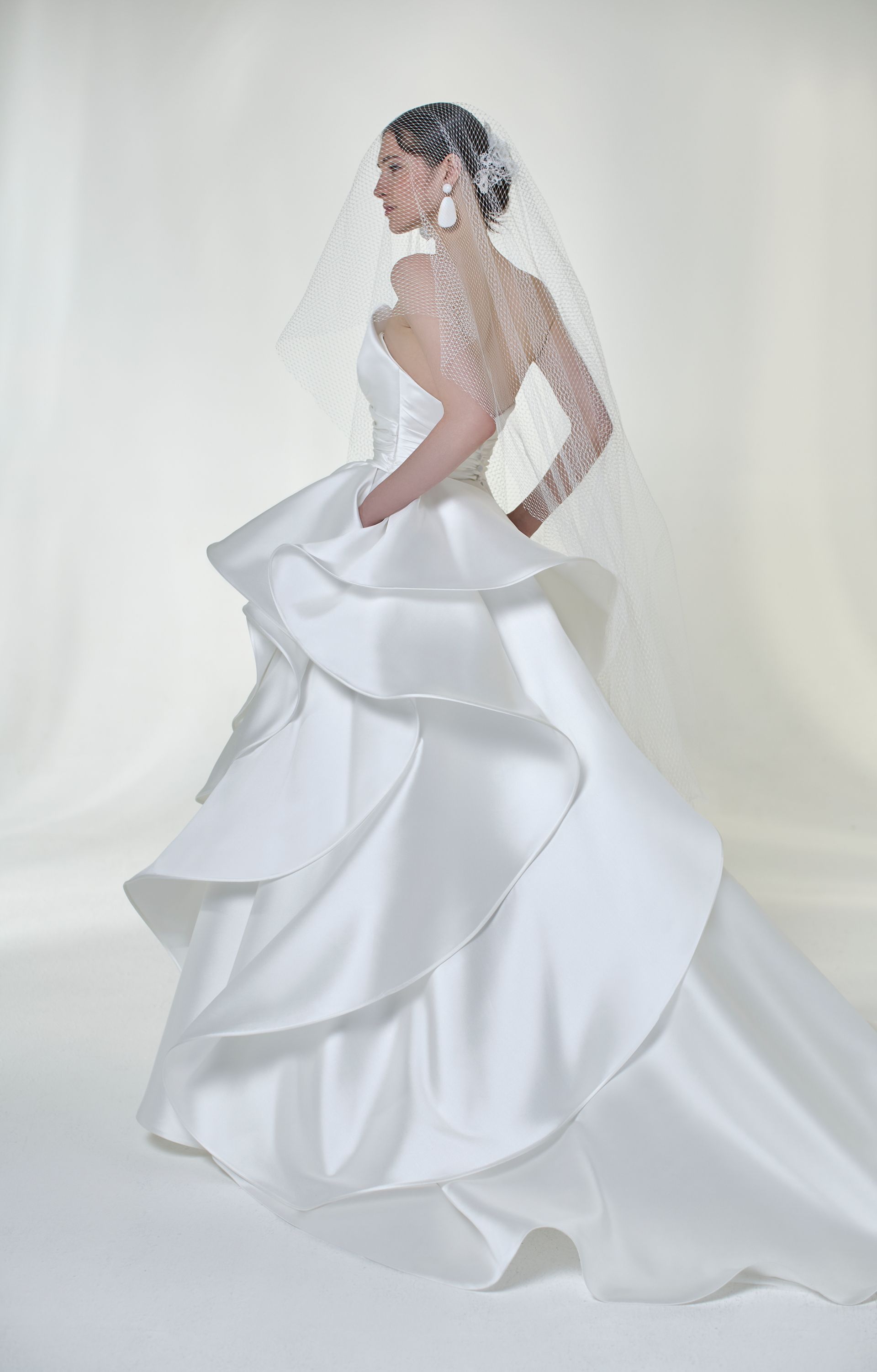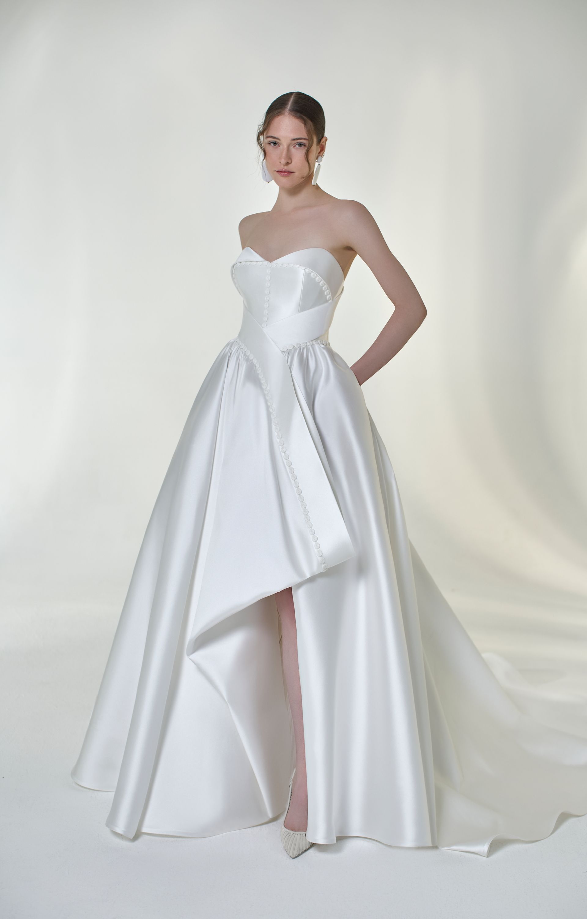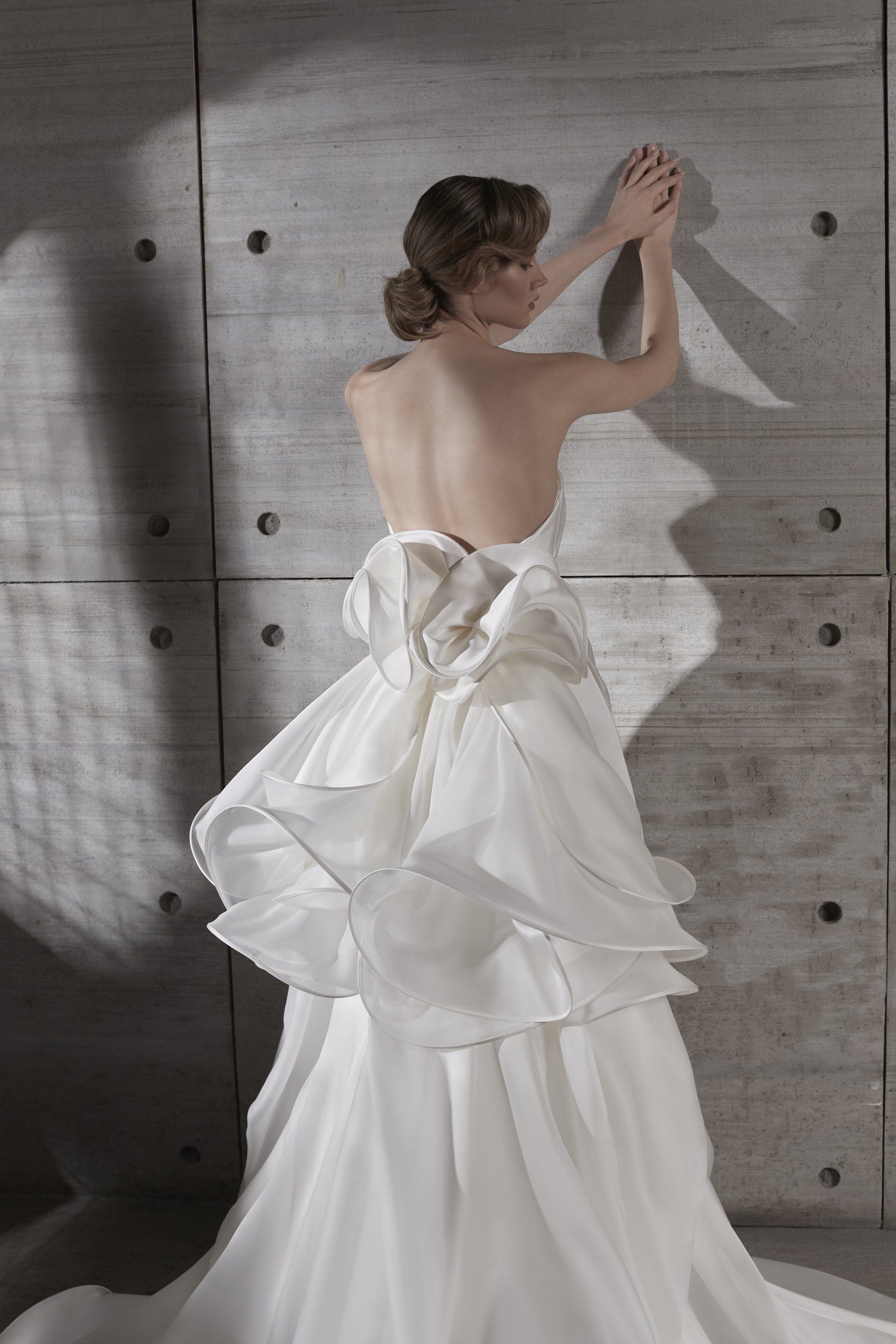 Trasparenze, plumetis, glitter, pizzi tridimensionali e a rete, fiori stilizzati e piccole farfalle rendono le creazioni haute couture della linea EP originalissime ed esclusive. La scelta accurata dei tessuti innovativi e l’impatto scenico di modelli estrosi, li rende indimenticabili e perfetti per una sposa dal carattere audace e grintoso.