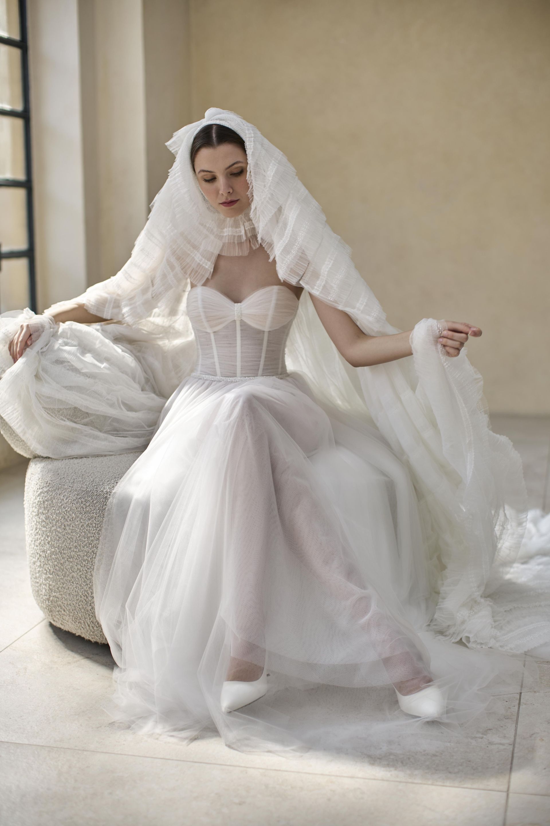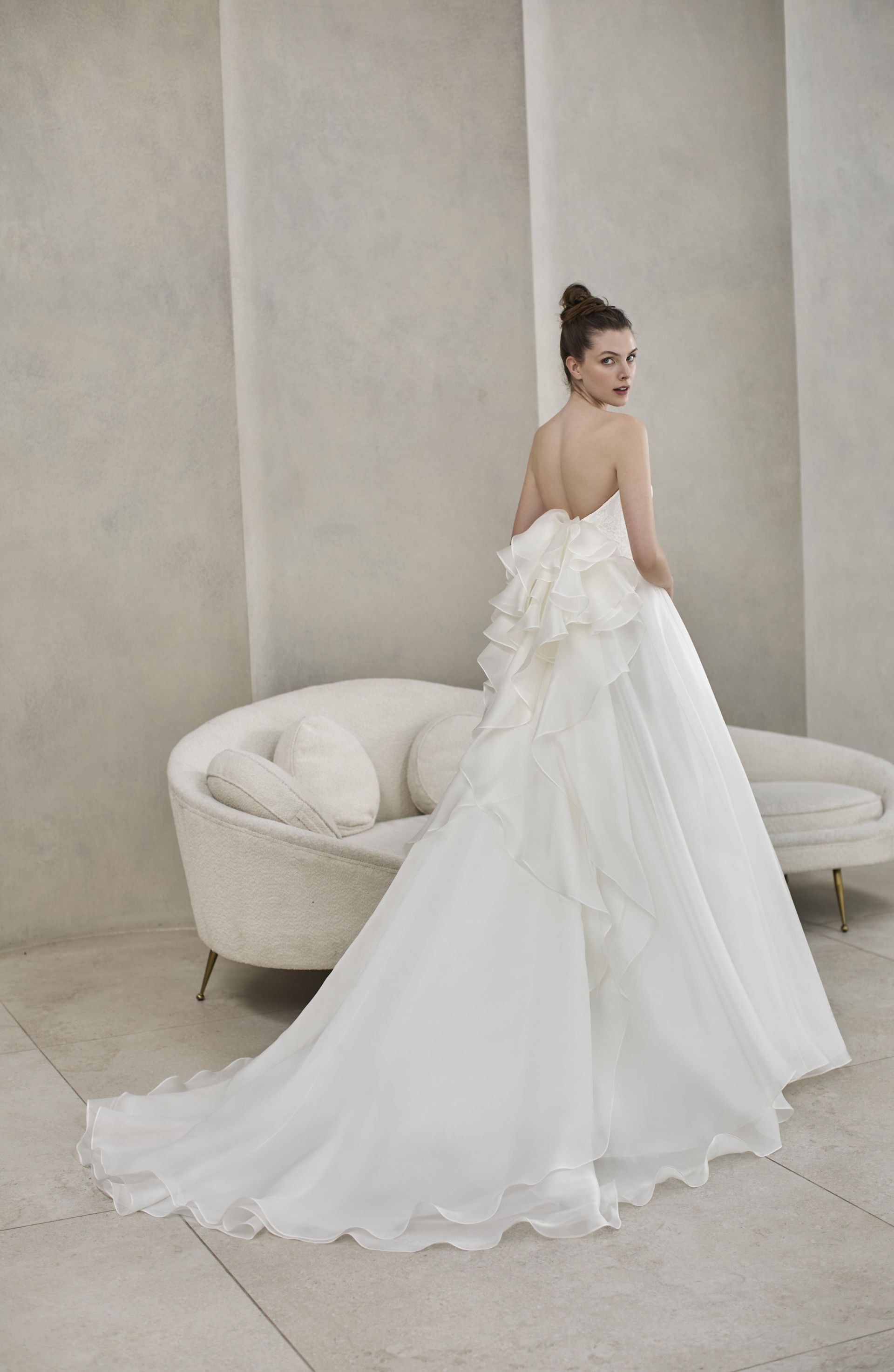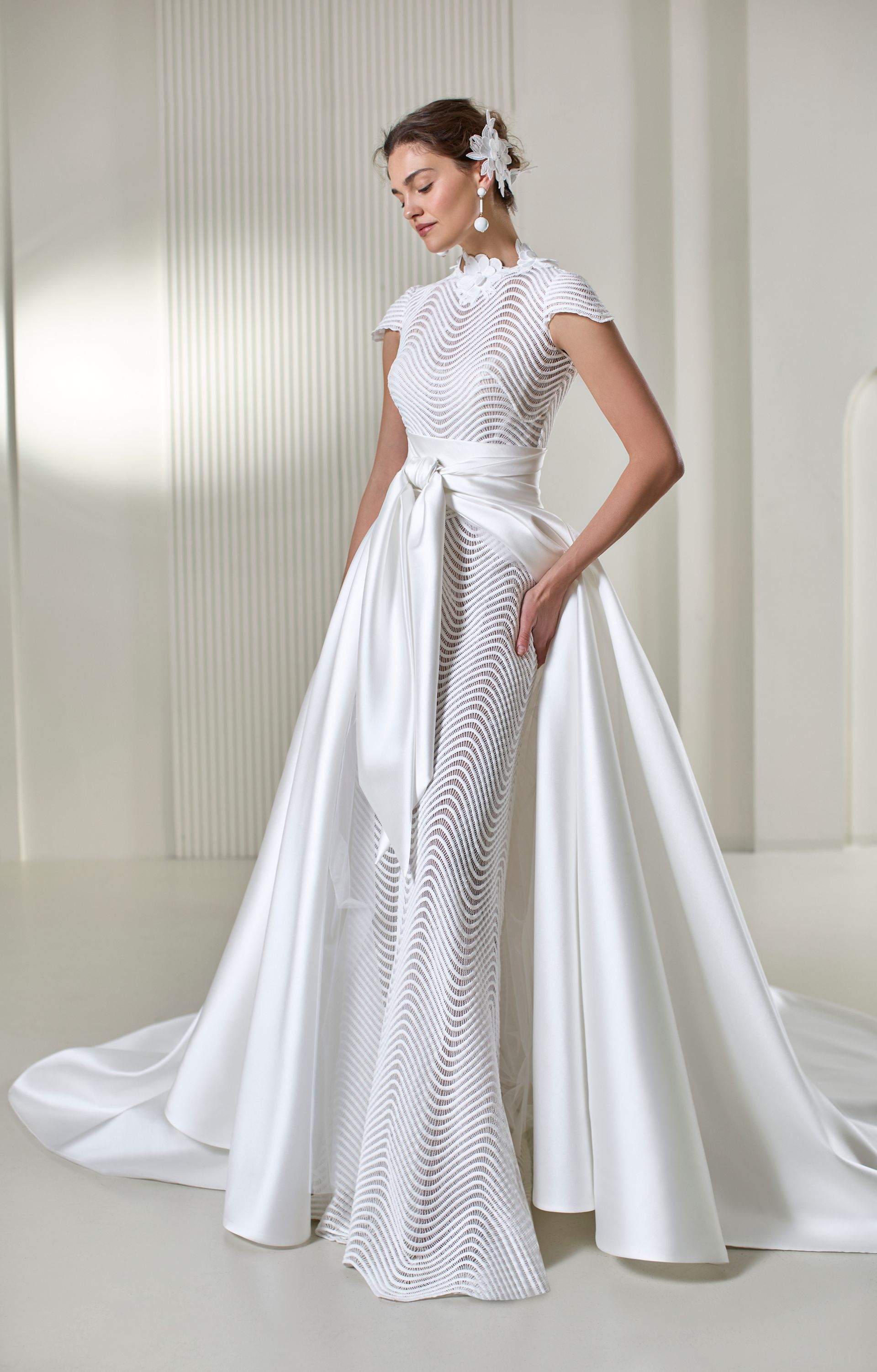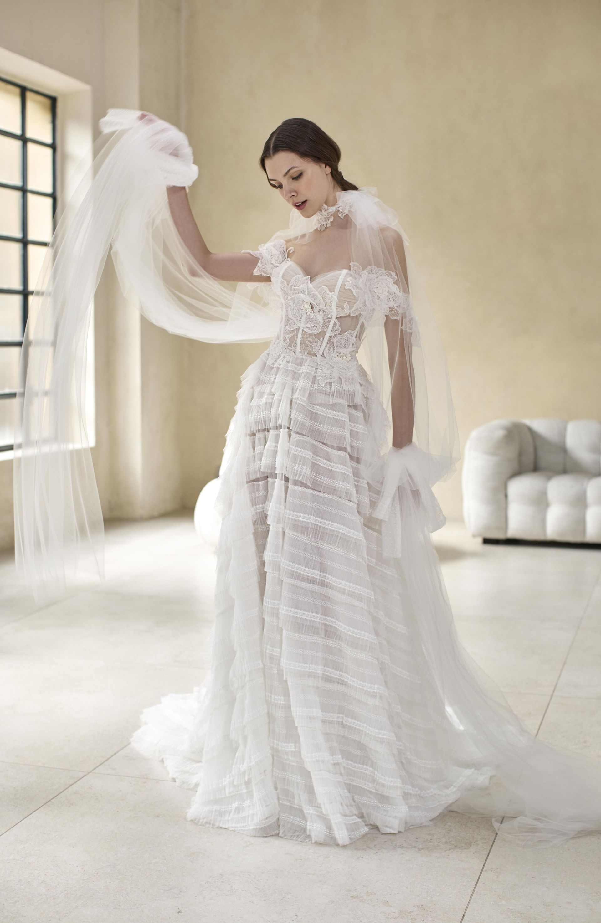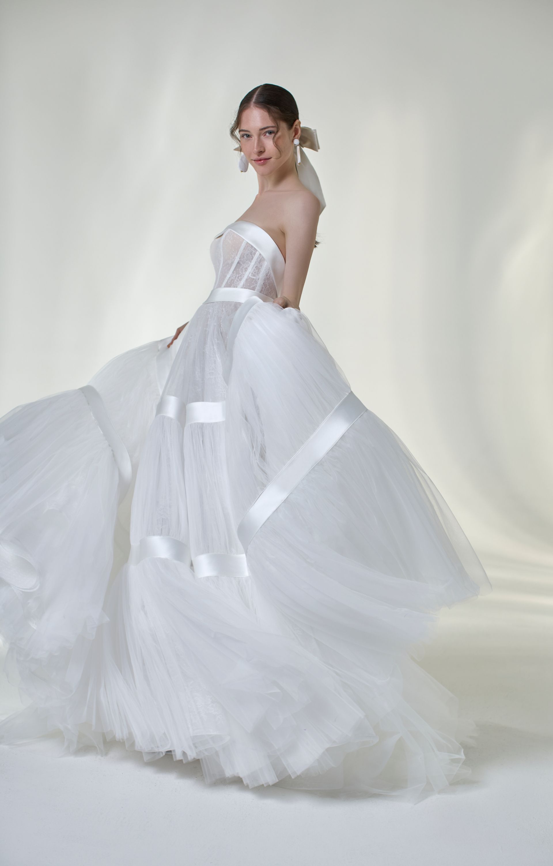 Trasparenze, plumetis, glitter, pizzi tridimensionali e a rete, fiori stilizzati e piccole farfalle rendono le creazioni haute couture della linea EP originalissime ed esclusive. La scelta accurata dei tessuti innovativi e l’impatto scenico di modelli estrosi, li rende indimenticabili e perfetti per una sposa dal carattere audace e grintoso.