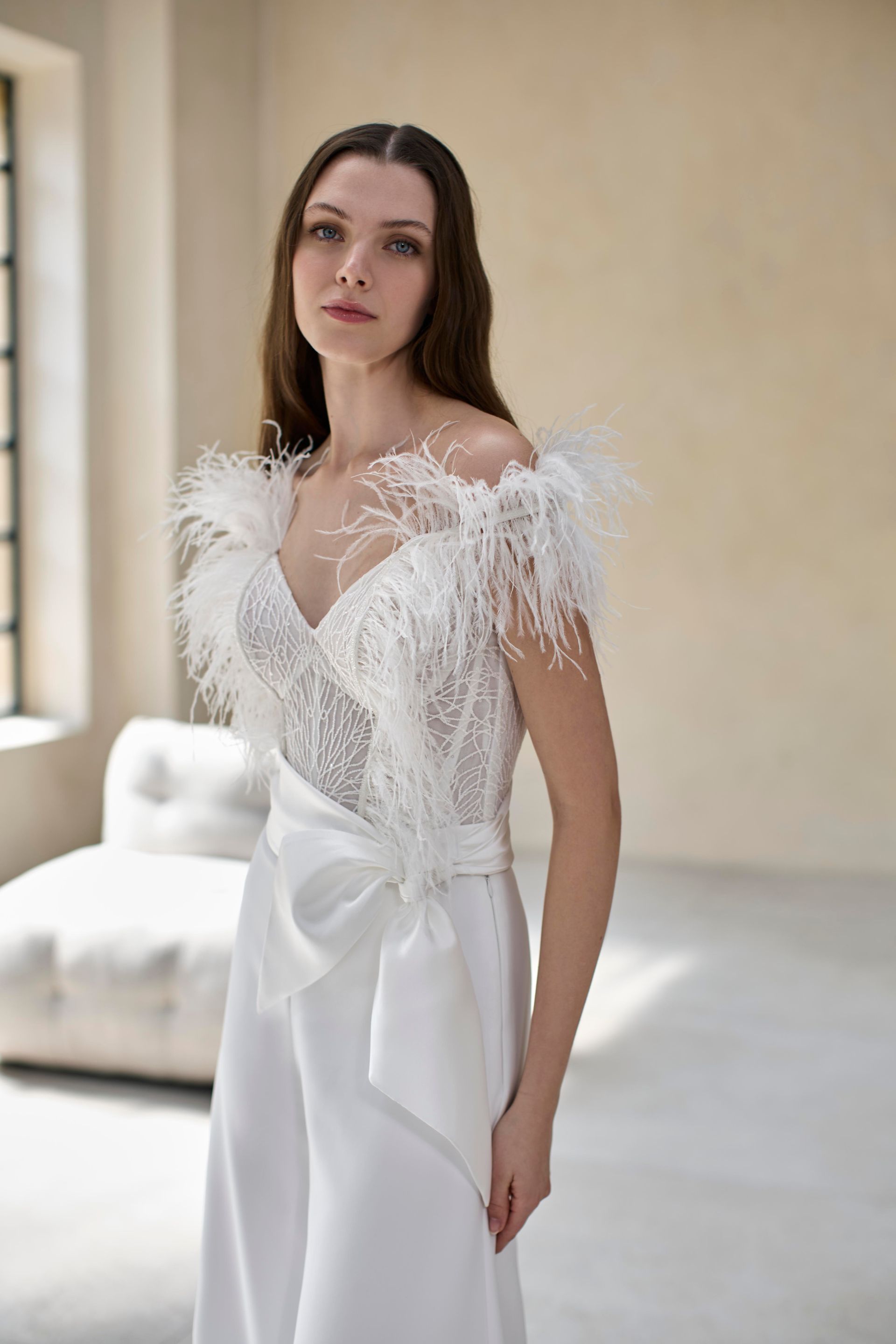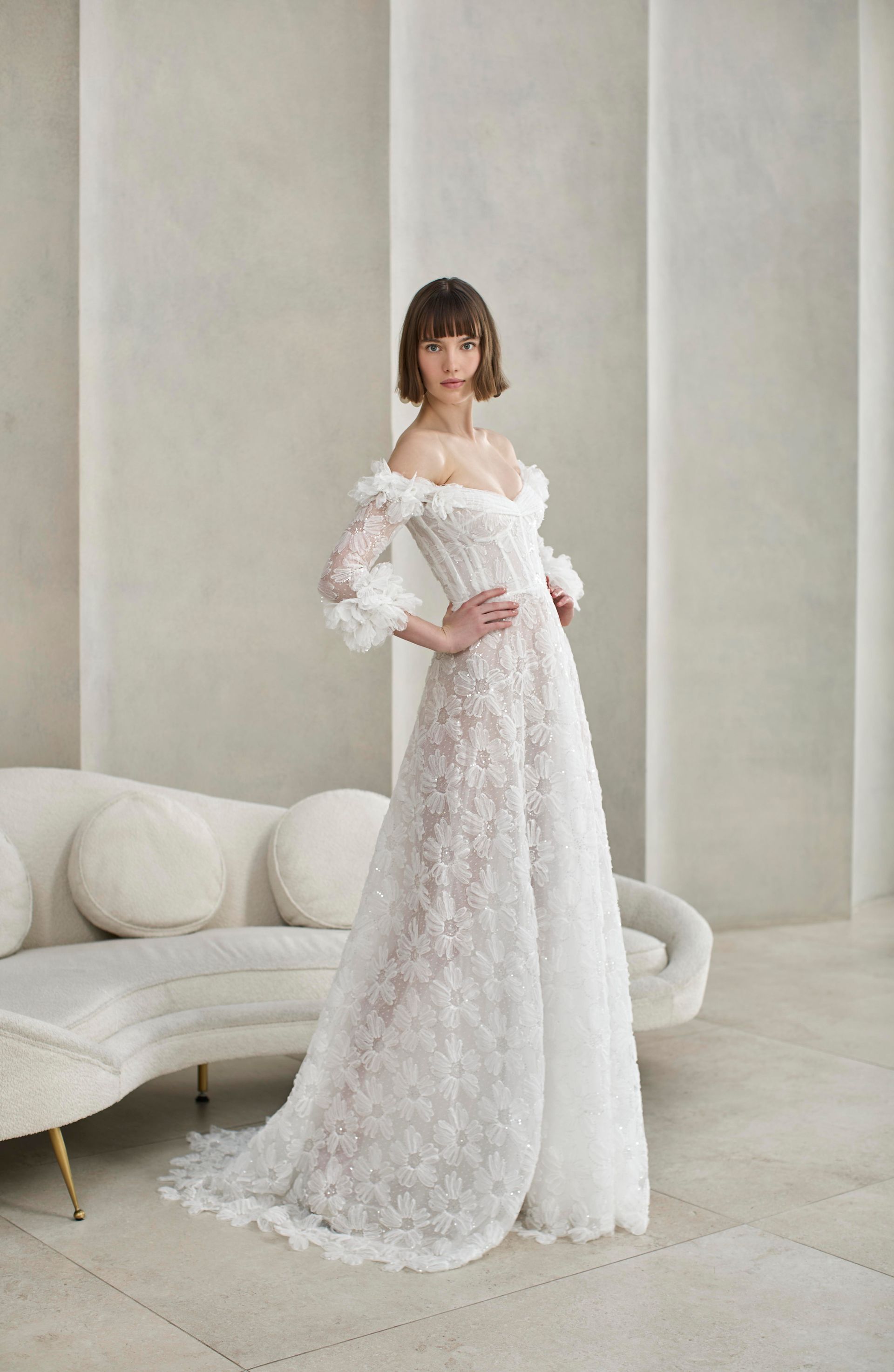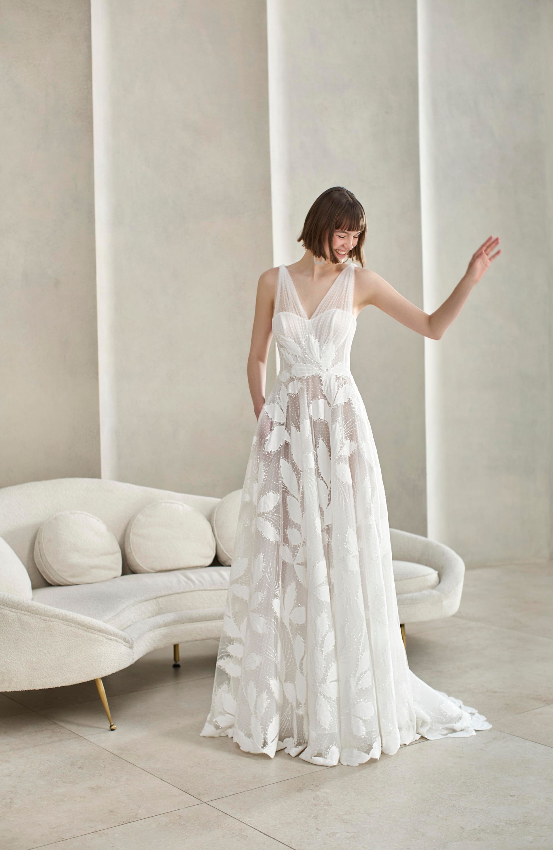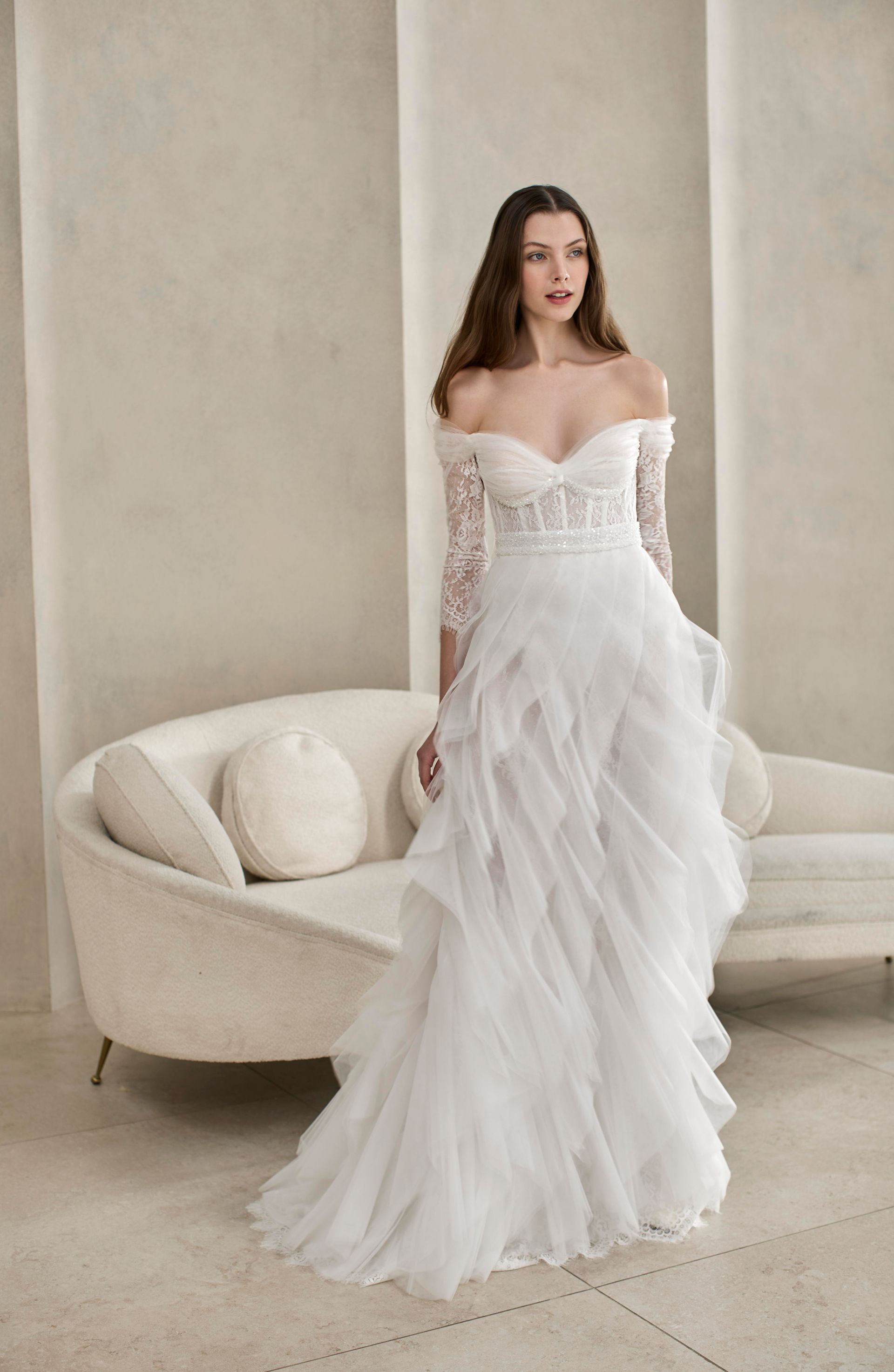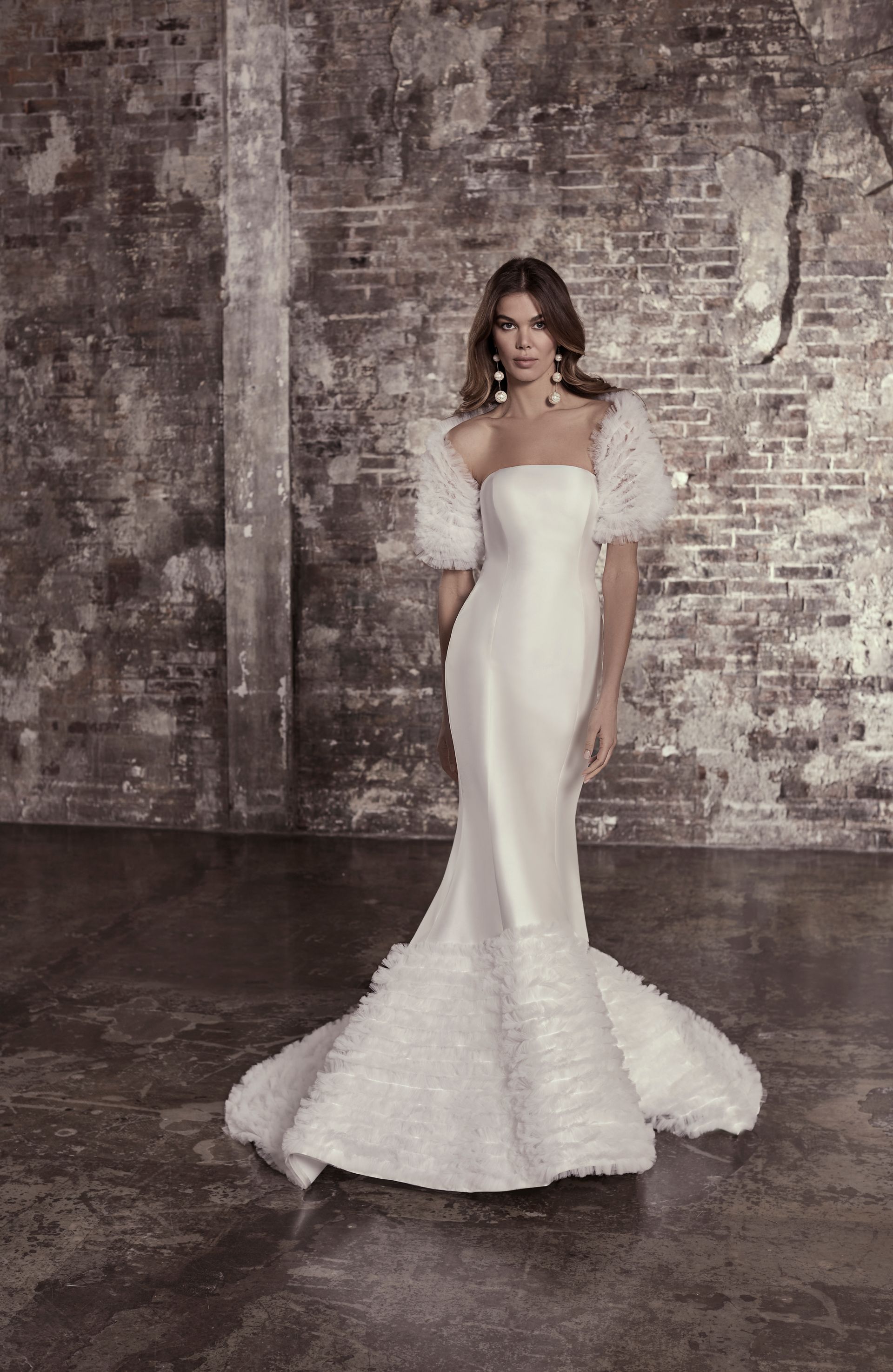 Trasparenze, plumetis, glitter, pizzi tridimensionali e a rete, fiori stilizzati e piccole farfalle rendono le creazioni haute couture della linea EP originalissime ed esclusive. La scelta accurata dei tessuti innovativi e l’impatto scenico di modelli estrosi, li rende indimenticabili e perfetti per una sposa dal carattere audace e grintoso.