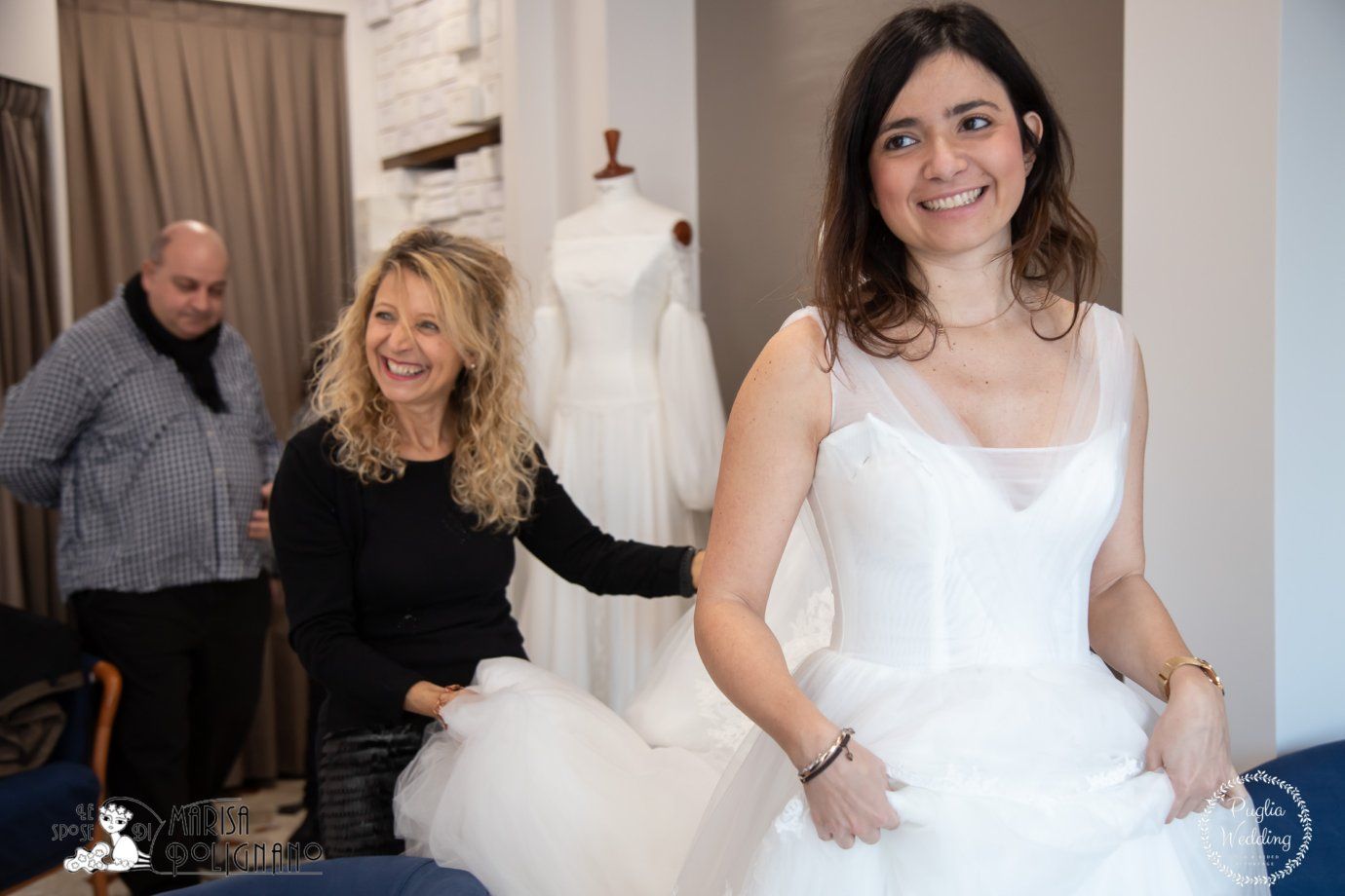 Nel mio atelier di Putignano ogni sposa ha la possibilità di scegliere un abito unico, personalizzato e realizzato esclusivamente per lei. Tutti i miei abiti da sposa sono rigorosamente Made in Italy in tutte le fasi della lavorazione e ci tengo in primis perché il nostro fiore all’occhiello deve essere tutelato e salvaguardato.